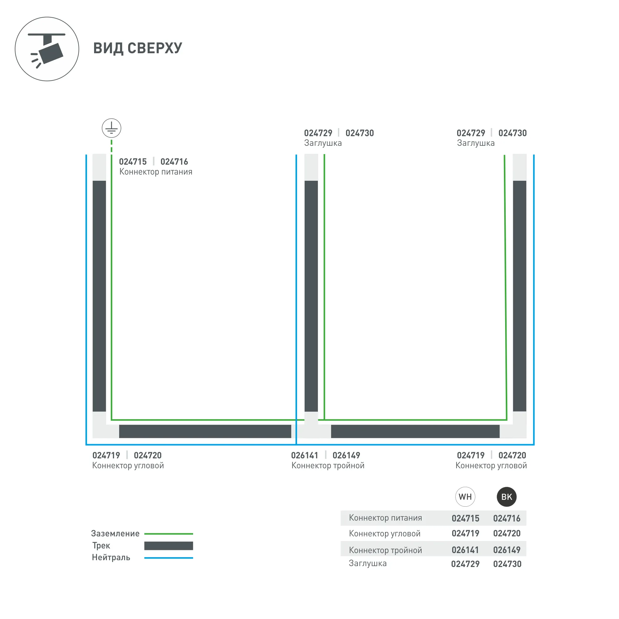 Угловой коннектор 90 градусов, питание по внутренней стороне. Цвет черный. 99х99х33 мм с контактами, 66х66х33 мм без контактов. При использовании с треками и аксессуарами другой серии возможно отличие по цвету.