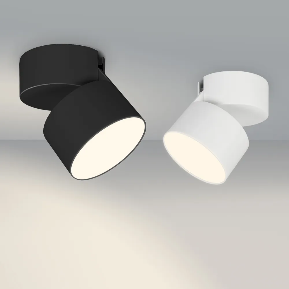 Накладной откидной светильник 25Вт, белый круглый корпус. Цвет ТЕПЛЫЙ 3000K, св.поток 1700лм, CRI(Ra)>90, угол 110°. Размер светильника Ф110x75мм, размер чаши Ф110x49мм. Питание AC220-240V, 25Вт, драйвер встроенный (600mA, 27-40V). Поворачивается вокруг своей оси на 350° и отклоняется на 90°.Пульсация <0,3%