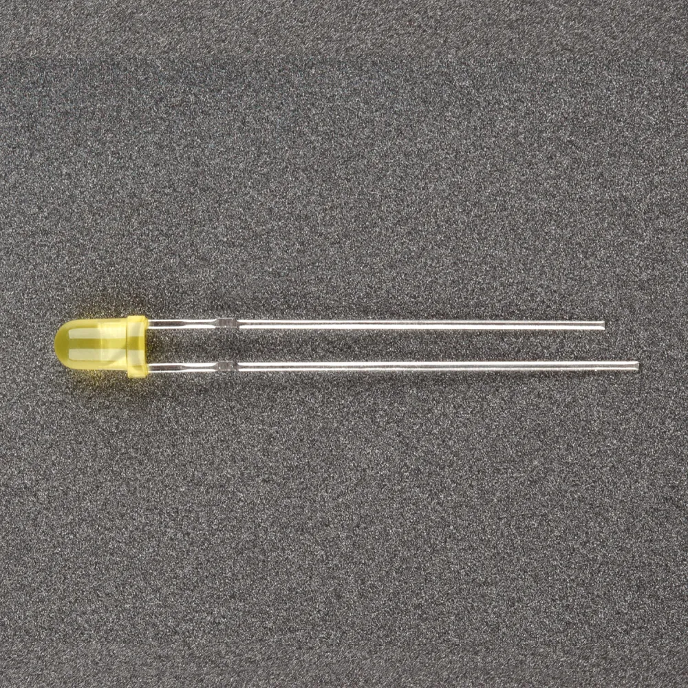 Поставка под заказ от 5000 шт. Выводной круглый светодиод, d=3 мм, диффузная желтая линза. Цвет свечения желтый (588 нм), мигающий. Угол излучения 45°. Сила света Iv=800-1000 мкд при If=20мА. VF=3-5 В. Частота мигания f =1.5 Гц.