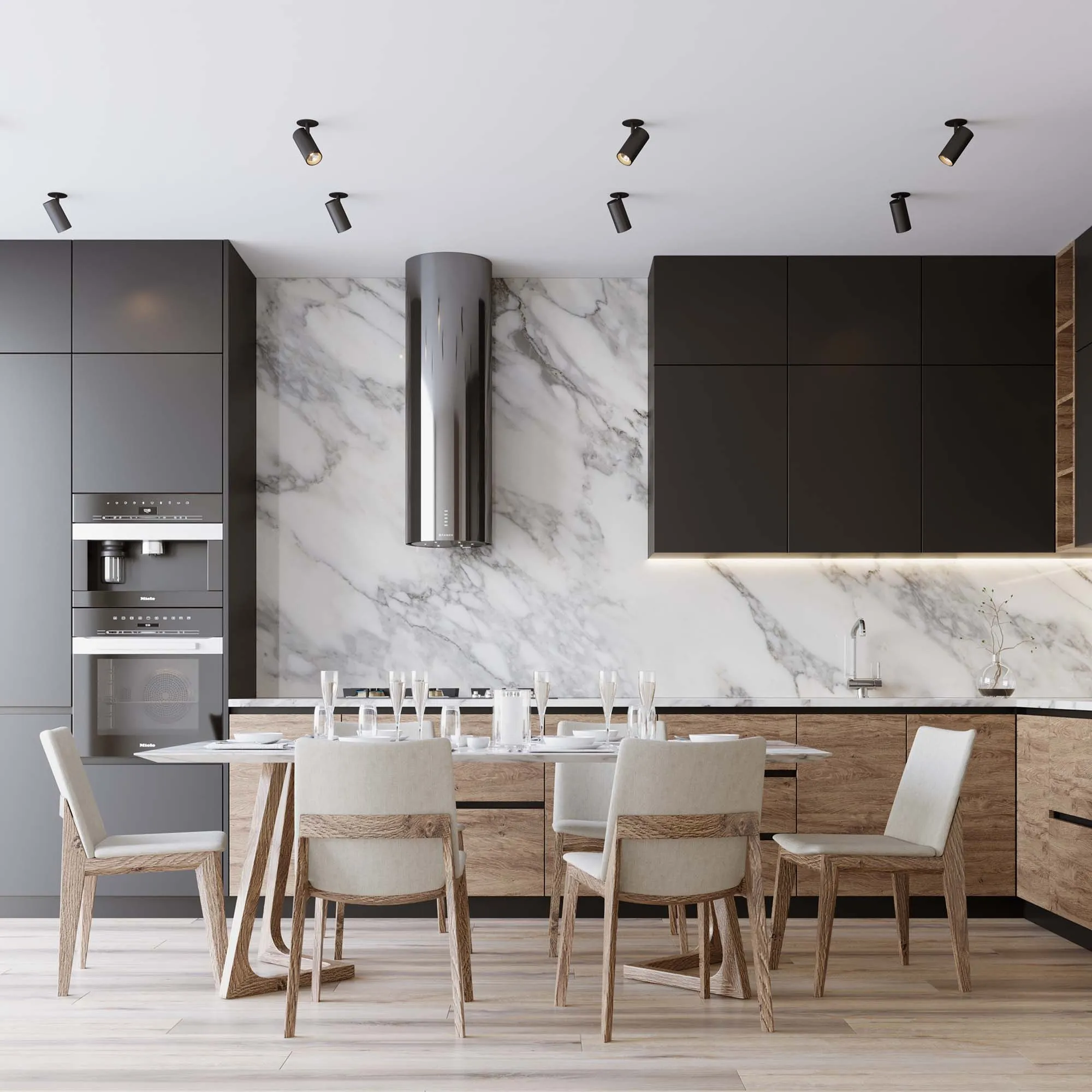 Встраиваемый поворотный светильник для потолка. Мощность 9 Вт, св. поток 666 лм, 74 лм/Вт, теплый 3000 K, CRI>90, угол 25°, напряжение питания 230 В. Черный корпус из алюминия, линза PC, степень защиты IP20. Размер: диаметр 55 мм, длина 110 мм, высота 80 мм. Угол поворота 350°, угол наклона 90°. Монтаж встраиваемый, установочное отверстие диаметр 60 мм. Драйвер 30-45 В, 220 мА, пульсация <5%.