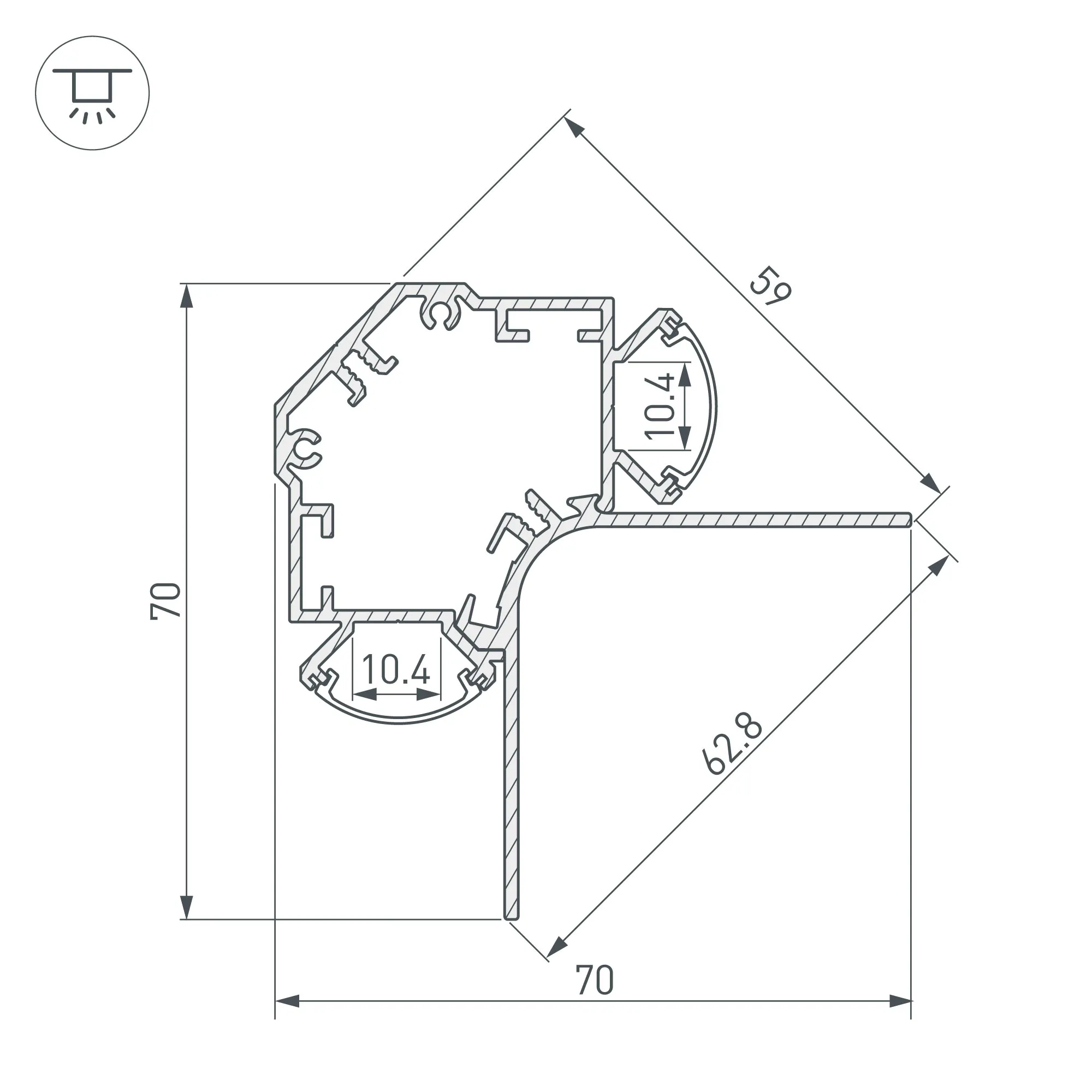 Алюминиевый накладной профиль для светодиодных лент и линеек с двусторонним свечением для создания эффекта «Отраженного света». Цвет-белый RAL9003 (порошковая окраска). Габаритные размеры (L×W×H): 2000x70x70 мм. Ширина площадок для лент 10,4 мм. Экраны, заглушки и другие аксессуары приобретаются отдельно. Цена за 1 метр.