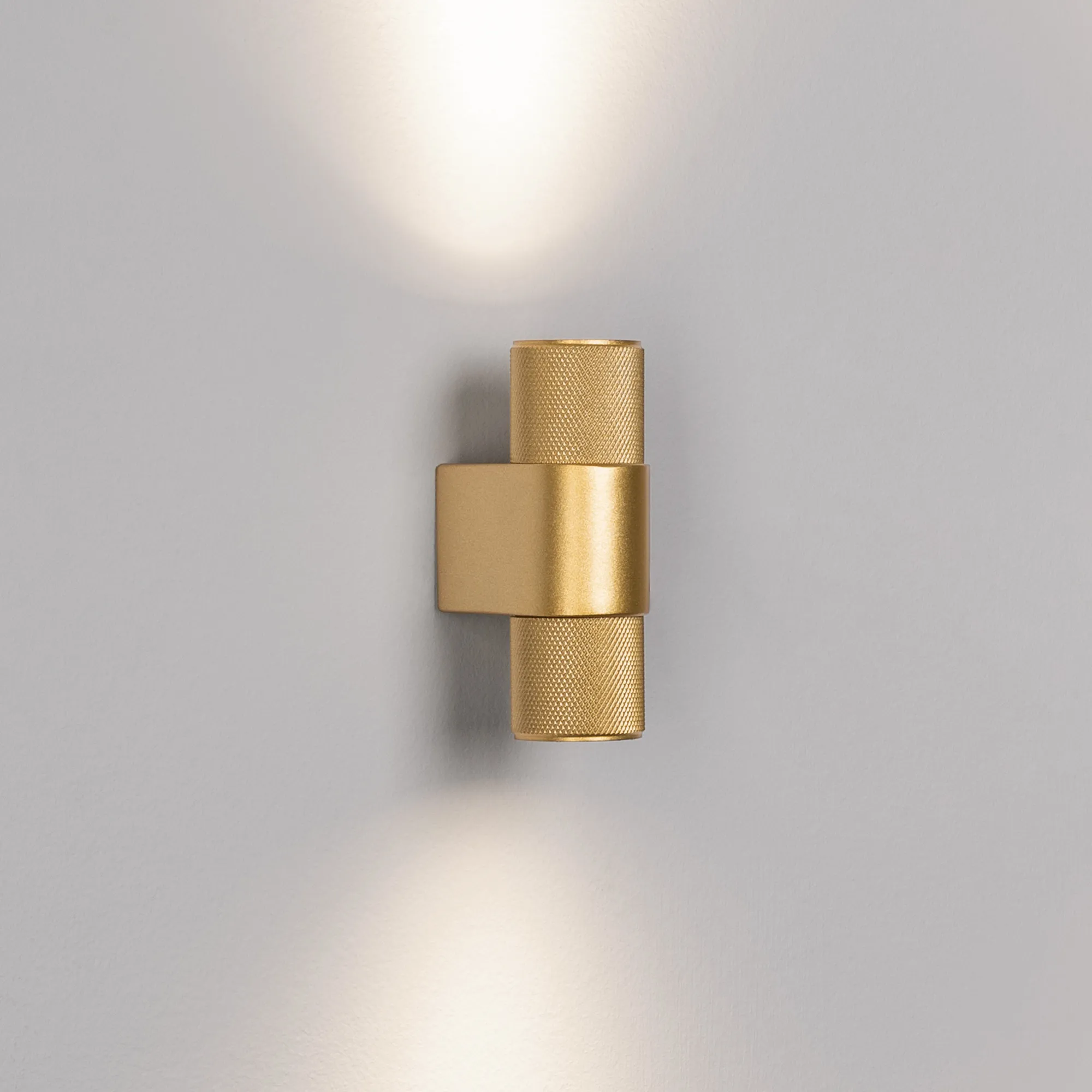 Настенный светильник со свечением в верхнюю и нижнюю полусферу. Мощность 6 Вт, св. поток 350 лм, 60 лм/Вт, дневной 4000 K, CRI>90, угол 40°, напряжение питания 230 В. Золотой фигурный корпус из алюминия, степень защиты IP20. Размер: длина 60 мм, ширина 38,5 мм, высота 104 мм. Монтаж накладной. Драйвер 5-9 В, 700 мА, пульсация <1%.