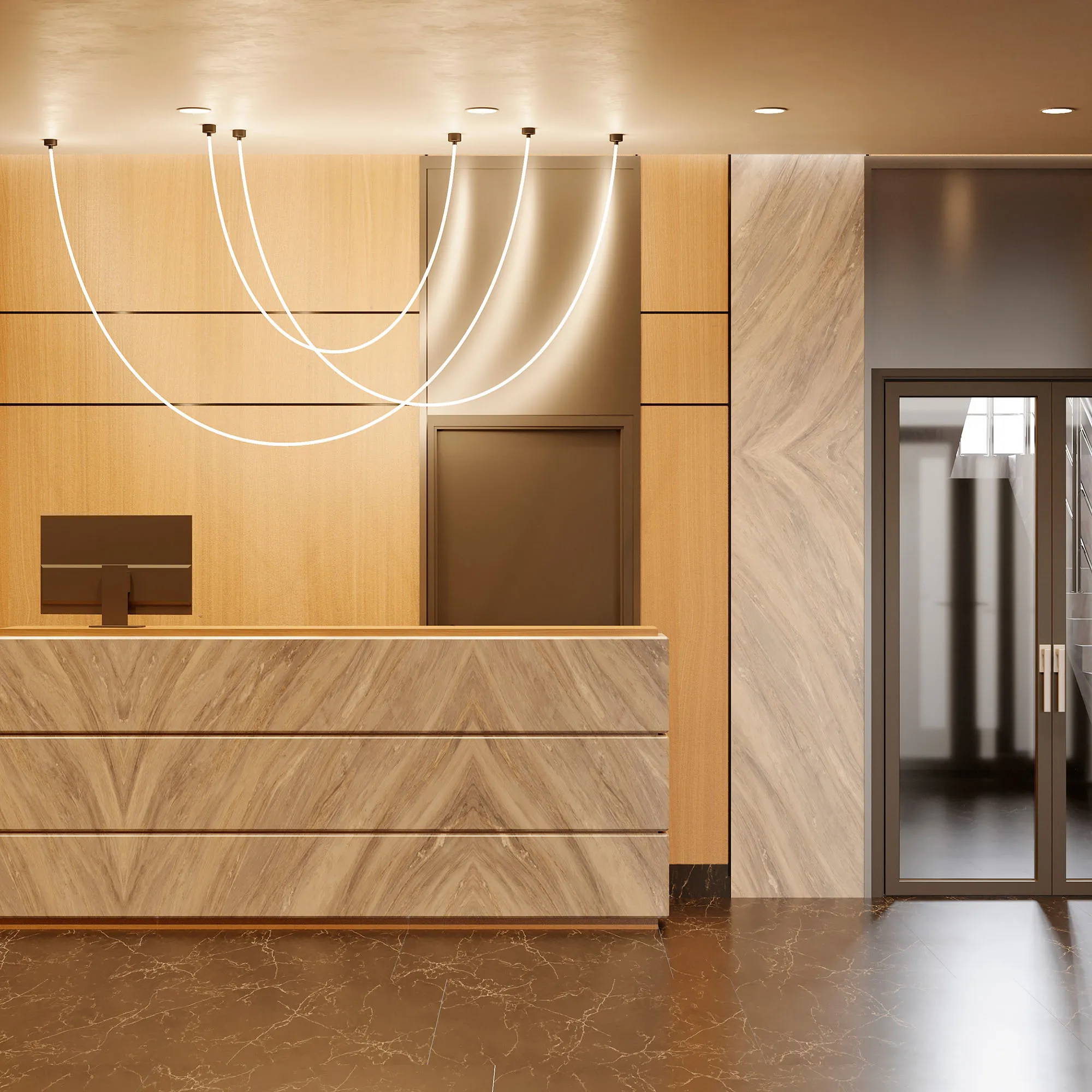 Подвесной светильник. Мощность 18 Вт, св. поток 980 лм, 54 лм/Вт, тёплый 3000 K, CRI>90, угол 360°, напряжение питания 230 В. Чёрный круглый корпус из стали, силиконовая герметичная лента, степень защиты IP20. Размер: общая высота чаши 85 мм, высота чаши без вывода под неон 50 мм, диаметр вывода под неон 35 мм, диаметр чаши 130 мм, диаметр силиконовой герметичной ленты 18 мм, длина силиконовой герметичной ленты 1200 мм. Монтаж накладной. Блок питания 24 В, 750 мА, пульсация <5%.
