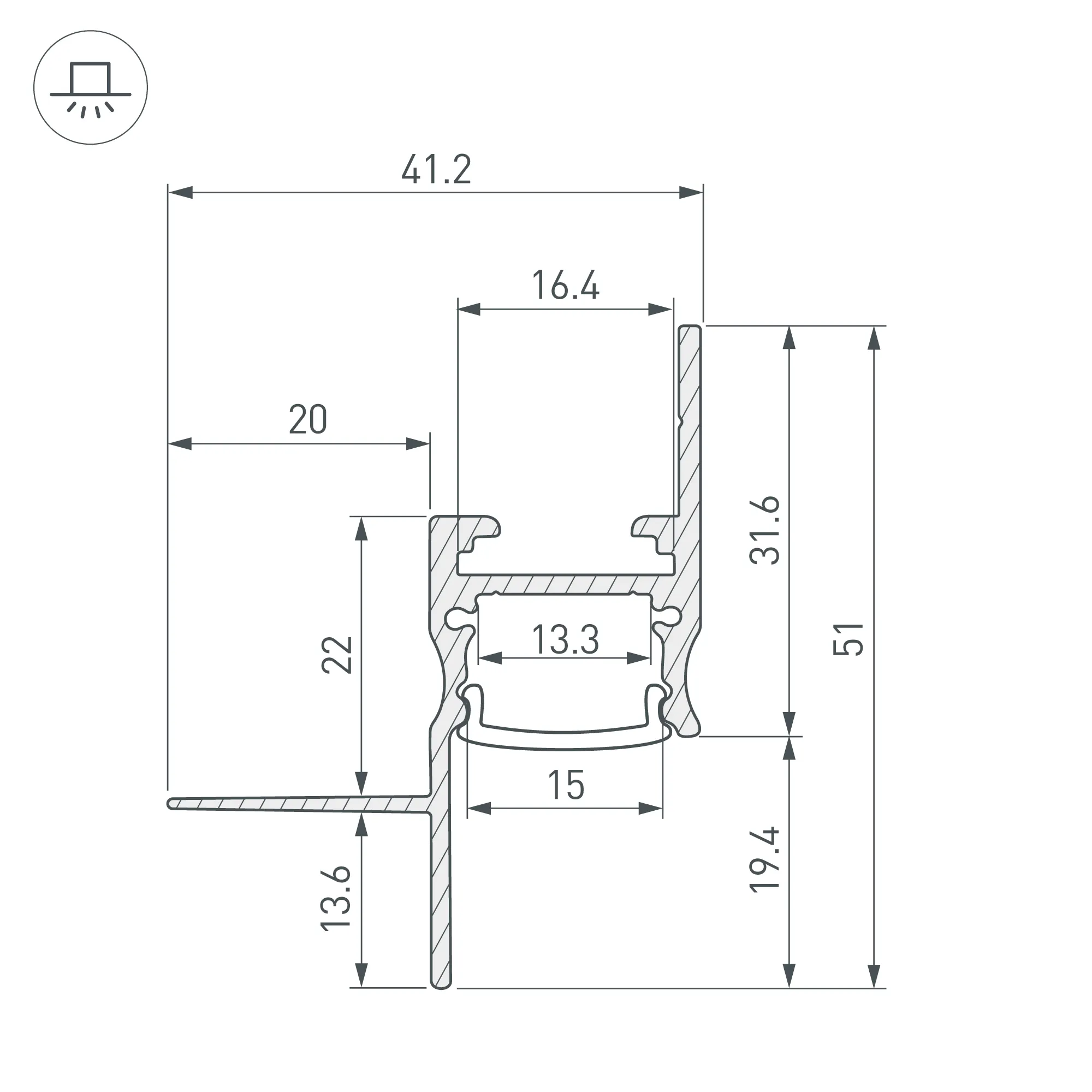 Алюминиевый встраиваемый профиль для светодиодных лент и линеек. Цвет - черный RAL9005 (порошковая окраска). Габаритные размеры (L×W×H): 3000х41,2х51,0 мм. Ширина площадки для ленты 13,3 мм. Экраны, заглушки и другие аксессуары приобретаются отдельно. Цена за 1 метр.