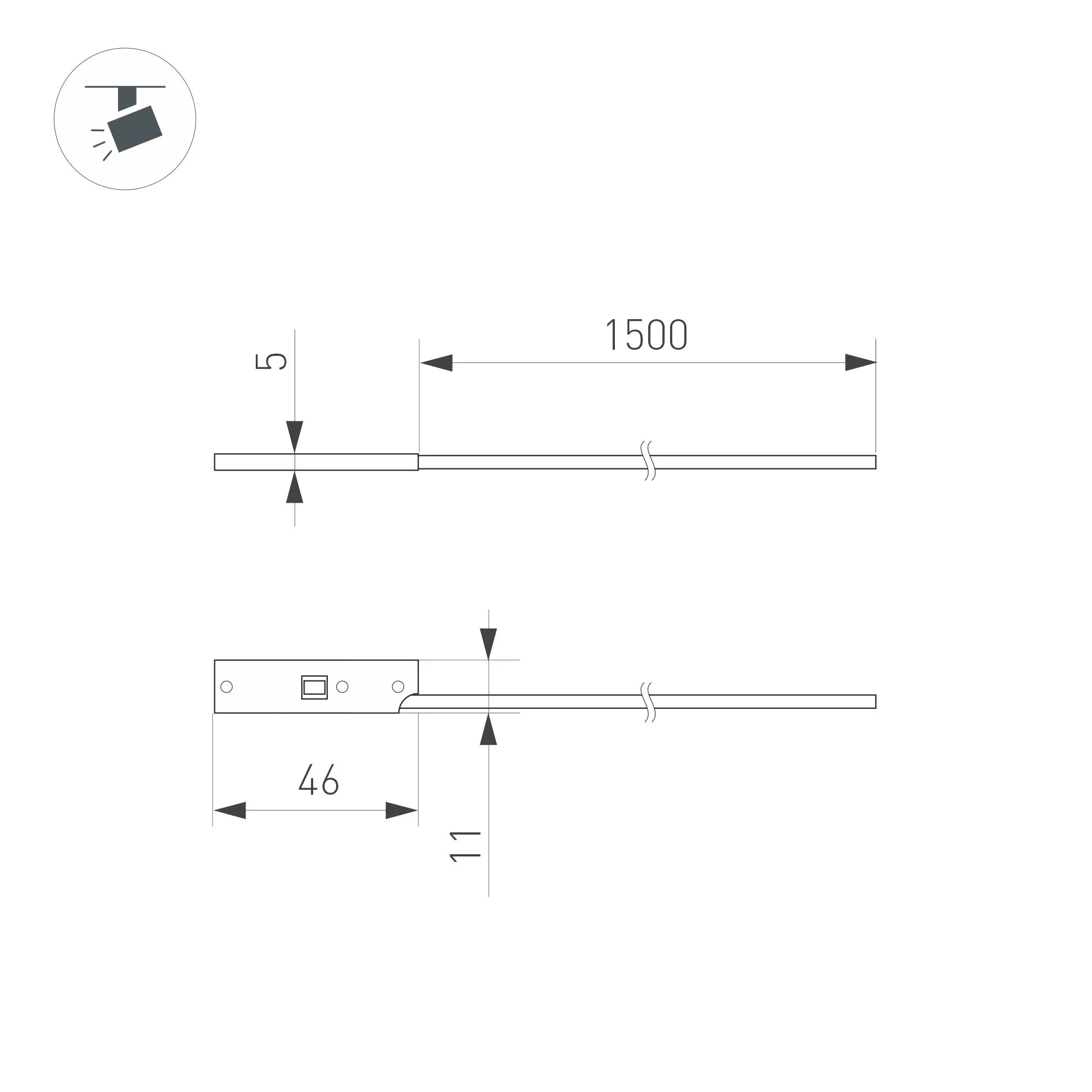 Коннектор подвода питания для треков MAG-MICROCOSM. Цвет Черный. Кабель в комплекте. Длина кабеля 1.5 м, DC24V. Габариты 46х5х11 мм.