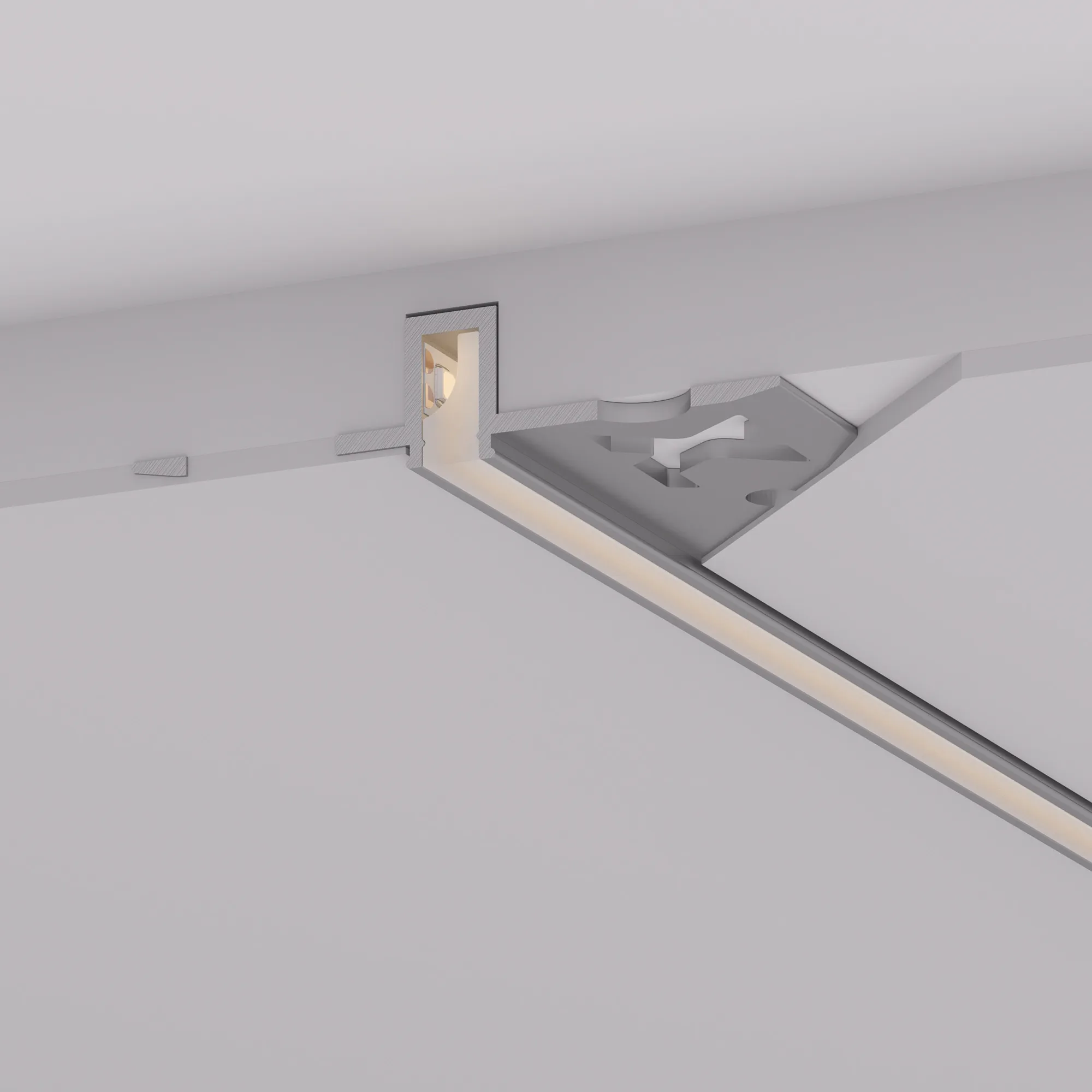 Алюминиевый анодированный профиль для светодиодных лент и линеек. Скрытая установка (под строительную отделку). Габаритные размеры (L×W×H): 2000x46,5x9,5 мм, паз для установки 6,5х6,8 мм. Ширина площадки для ленты 5 мм. Экраны приобретаются отдельно. Цена за 1 метр.