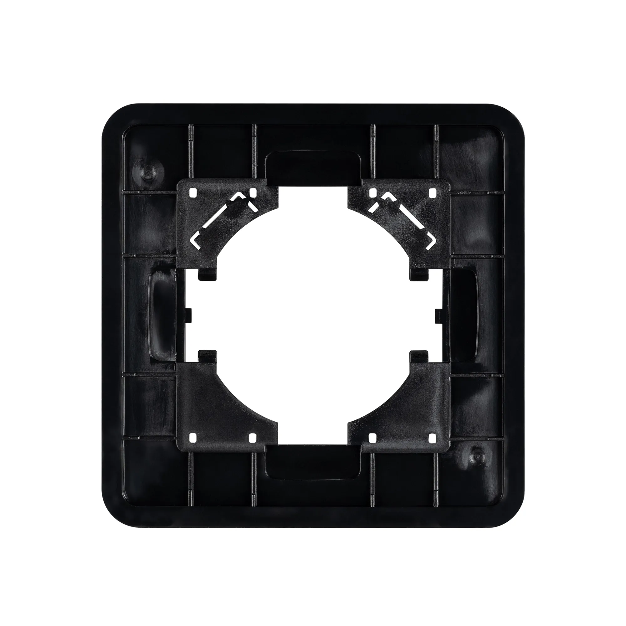 Рамка алюминиевая на 1 пост, под встраиваемый механизм. Цвет - черный с Soft-Touch покрытием. Уровень герметичности IP20. Ориентация монтажа - горизонтальная (основным ориентиром служат посадочные выступы для накладки механизма).