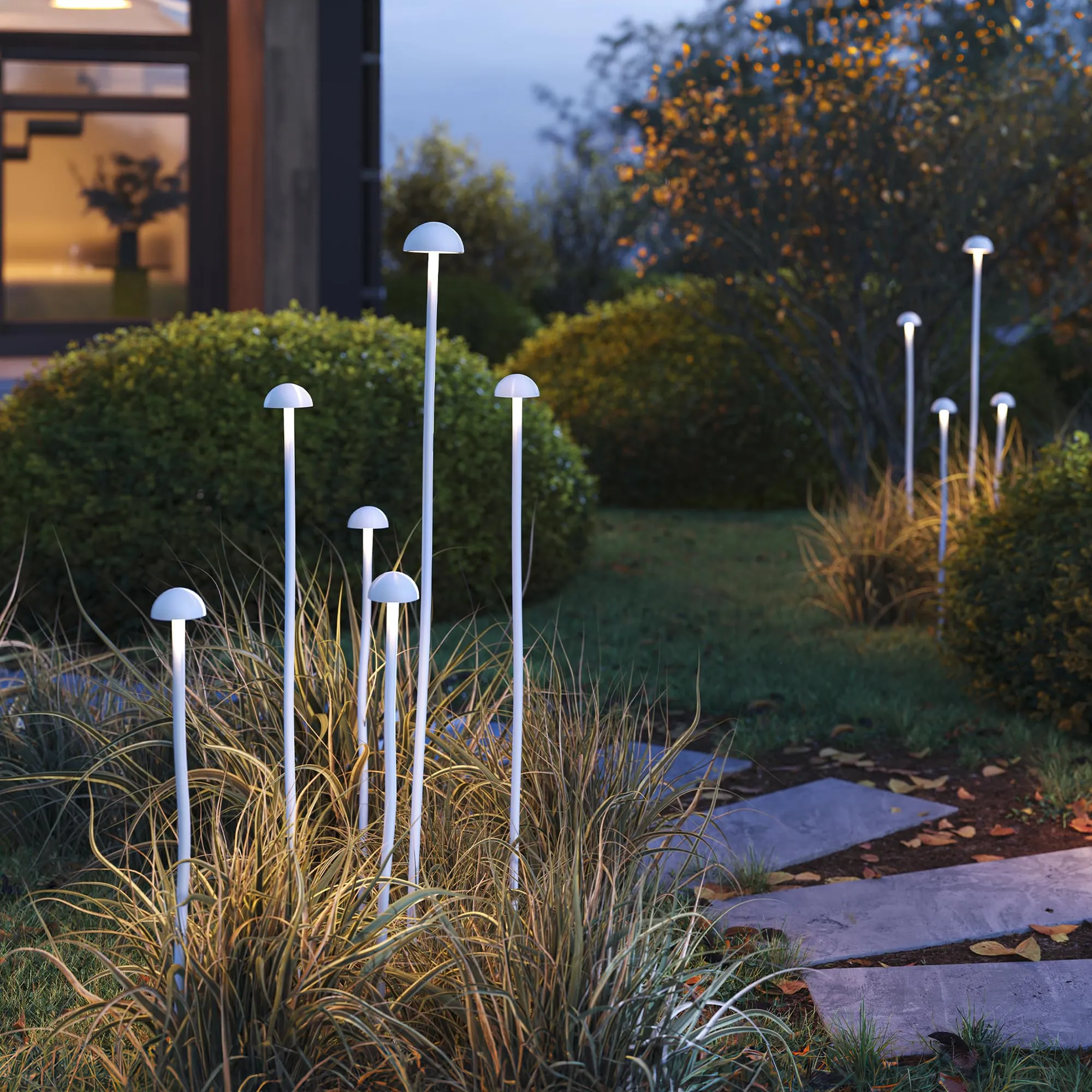 Уличный декоративный светодиодный светильник. Мощность 2 Вт, св. поток 200 лм, 100 лм/Вт, теплый 3000 K, CRI>80, угол излучения 100° напряжение питания 24 В. Белый корпус из алюминия, прозрачный матовый рассеиватель из PMMA. Степень защиты IP65. Размер: диаметр 60 мм, высота 600 мм, высота углубления 160 мм. Монтаж в грунт с помощью основания пика (входит в комплект поставки). Драйвер приобретается отдельно.