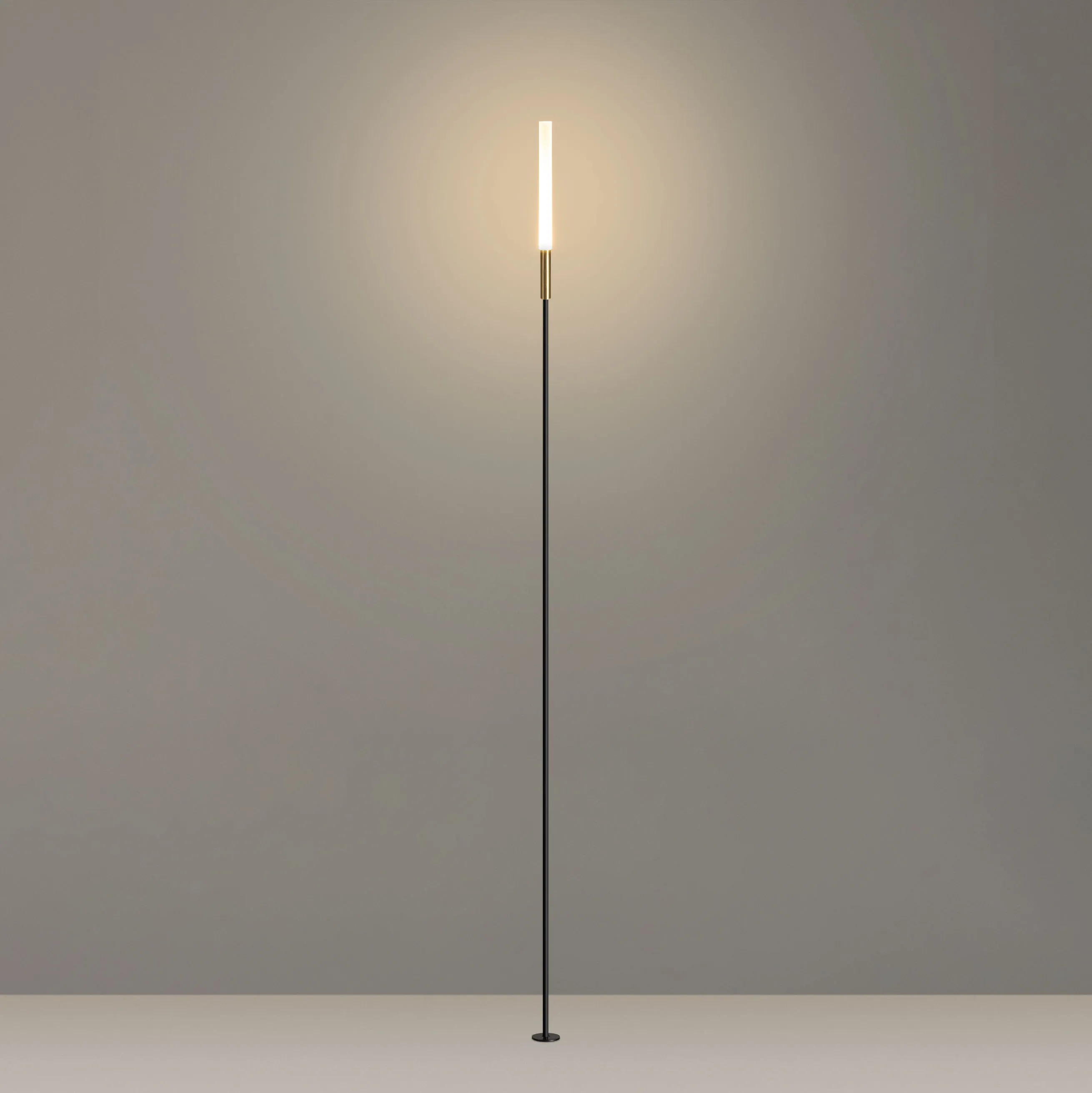 Уличный декоративный светодиодный светильник. Мощность 0.5 Вт, св. поток 15 лм, 105 лм/Вт, теплый 3000 K, CRI>80, угол излучения 160°, напряжение питания 24 В. Черный корпус из алюминия, прозрачный матовый рассеиватель из стекла. Степень защиты IP65. Размер: диаметр 15 мм, высота 1075 мм, высота углубления 160 мм. Монтаж в грунт с помощью основания пика (входит в комплект поставки). Драйвер приобретается отдельно.
